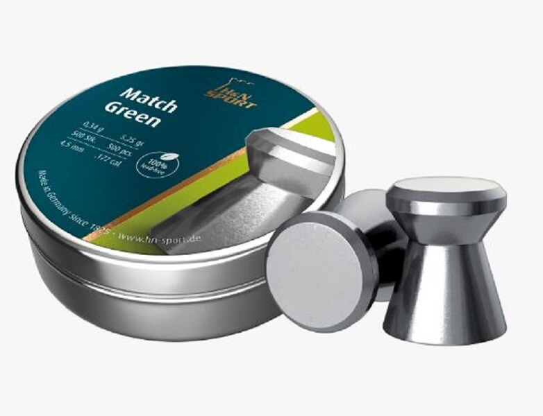 - 5 Dosen - H&N - Luftgewehrmunition Match Green - 100% Bleifrei - 4,5 mm - 500 Stück
