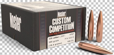 Sofortkauf:EUR 47,0052 Tage 22 Std. - 100 Stück Nosler Geschosse .338, 300 grain, CUSTOM COMPETITION, HPBT
