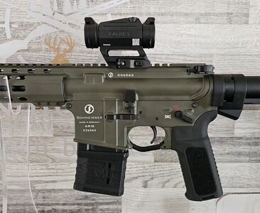 Als Komplettset einsatzfertig montiert mit Reflexvisier / Red-Dot-Sight FALKE S und Schalldämpfer Schmeisser SD15.