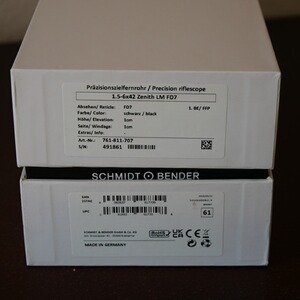 Verkaufe ein Schmidt & Bender 1.5-6x42 Zenith LM FD7 . Das ZF wurde wenig geführt und befindet sich in einem neuwertigen Zustand, es sind leichte Montagespuren der vorherigen Montage vorhanden aber nichts wildes die vermutlich von der neuen verdeckt werden, es ist natürlich voll funktionsfähig und hat noch reichlich Restgarantie. Eine Vorabbesichtigung ist ausdrücklich erwünscht und nach Rücksprache natürlich kurzfristig möglich. Am besten Selbstabholung damit sie sich selbst von dem super Zustand überzeugen können.