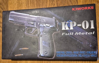 KJ Works KP 01 Hämmerli S26 6mm GBB, Airsoft Pistole Gas Blowback, gebraucht aber sehr guter Zustand, siehe Bilder! Bauart ähnelt der Sig Sauer P226! Durch die Bilder nicht irritieren lassen, es ist feiner Staub der sich im Licht "reflektiert".