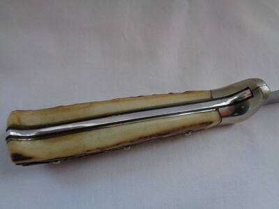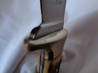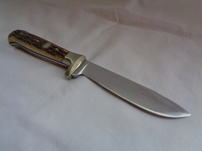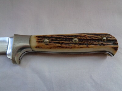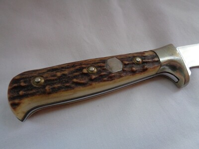 Der Jagdnicker ist gemäß der Seriennummer 45471 im Januar 1974 gefertigt (Bestell-Nr. 3589) und besitzt eine Klinge aus INOX-Stahl und Griffschalen aus Hirschhorn.