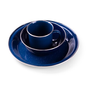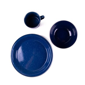 Kleines Emaille Camping-Geschirr-Set 3tlg in Blau - Tasse + Teller + Schüssel