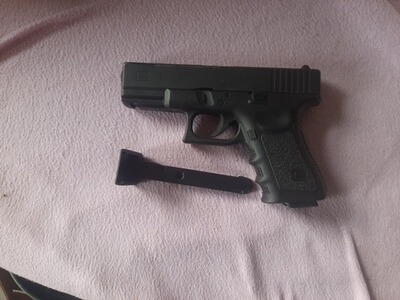 Zum Verkauf steht hier eine glock 19 in co2 nbb Ausführung. Sie liegt bei mir nur rum und kann aufgrund meiner Verkleinerung weg. Waffe ist soweit dicht und funktioniert.