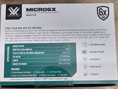Biete meinen neuwertigen Vortex Micro 6x Magnifier mit 6 fächer Vergrößerung an.