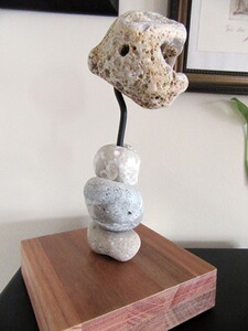 Außergewöhnliche Skulptur, gefertigt aus aus Holz und Stein, ein absolutes Unikat. Der Künstler nutzt hier geschickt den einzigartigen Baumeister Natur um seine Idee umzusetzen. Der Titel der Skulptur lautet „Le monstre d´Etretat“. Die Steine sind alle Lose gesteckt und können mit wenig Kraftaufwand abgenommen werden.