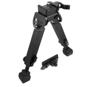 Das Zweibein besteht aus einer schlagfesten, gummierten Konstruktion, die eine komfortable Handhabung ermöglicht. Die robuste Heavy-Duty-Vollmetallkonstruktion trägt zur erhöhten Langlebigkeit des Produkts bei. Die patentierte Picatinny Quick Detachable Lever Lock Montagebasis bietet eine optionale Swivel Stud Montage. Zudem sind die Bipod-Beine vollständig einstellbar und verriegelbar, mit fünf vorgefrästen Rastpositionen im Abstand von etwa 17 mm sowie flexiblen Zwischenrastpunkten. Die schnelle, einstellbare 5-Positionen bidirektionale Klappfunktion sorgt für maximale Vielseitigkeit auf unterschiedlichen Plattformen. Rutschfeste Rubberized Foot Pads unterstützen die Stabilität. Die mittlere Höhe des Zweibeins ist variabel zwischen circa 152 mm und 216 mm.