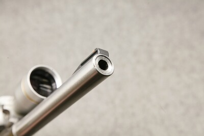 Montiert mit Zielfernrohr Leupold VX-3 2,5-8x32 Stainless-Finish, auf Ruger Kippmontage.