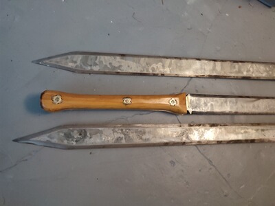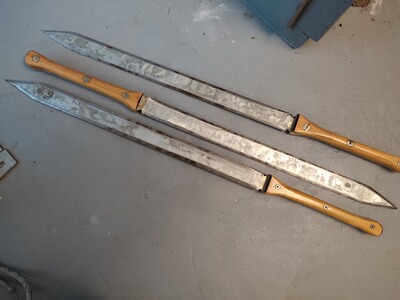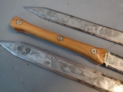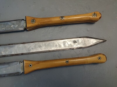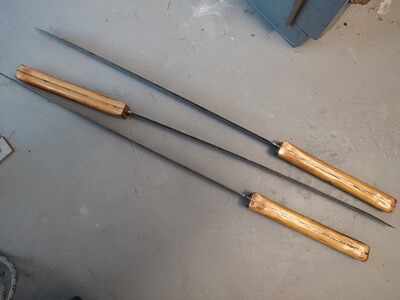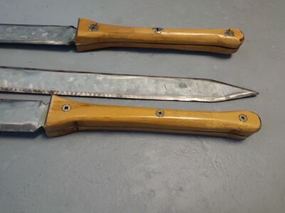 Biete mein Projekt zum Verkauf an , Griffe aus Buchenholz, lackiert, Klinge aus verzinkten stahl 6mm dick und insgesamt 1m lang !
