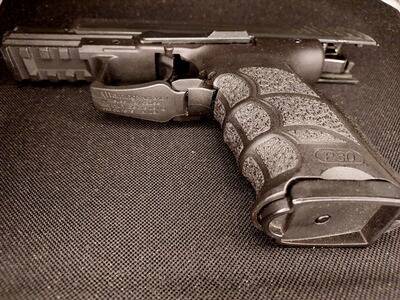 Die Heckler & Koch P30 ist von mir wenig geschossen und viel getragen - hat Abrieb vom Holster, welches wiederum sehr gut erhalten ist (siehe Fotos als Bestandteil der Artikelbeschreibung)