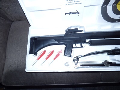 Die Armbrust ist NEU und wird wie abgebildet in der Originalbox geliefert. Wurde ca. 2016 neu für den 2. Wohnsitz gekauft, kam da aber nie zum Einsatz.