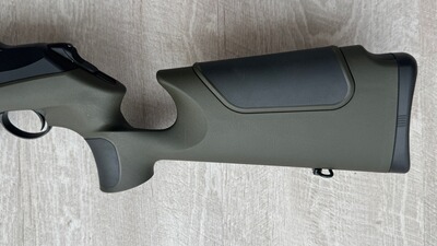 Bei der HELIX Speedster mit dem neuen SpeedStock wird dieses Problem eliminiert. Der Daumen gleitet wie auf Schienen entlang der ergonomischen Schaftform in Schussposition in den OmegaGrip und beim Repetieren wieder heraus. Der automatisch höhenverstellbare Schaftrücken lässt sich auf Knopfdruck in seiner Höhe anpassen – ein wichtiger Vorteil für den präzisen Schuss mit Zielfernrohr.