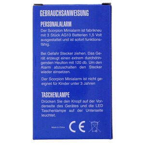 Außerdem hat der neue Personalalarm von Scorpion eine leistungsstarke LED - Lampe intrigirert, die super praktisch ist.