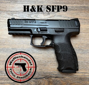 - Lieferumfang: Pistole H&K SFP 9, Reservemagazin, alle Kunststoffeinsätze für die Griffanpassung, Bedienungsanleitung, Koffer.