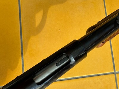 Leicht Gebrauchsspuren sind vorhanden, jedoch minimal, Z.b. Abschürfungen vom Repetieren am Hahn und dem Patronenlager.