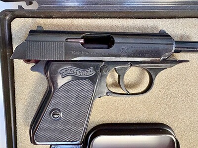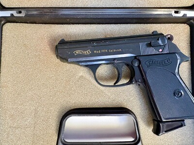 Zum Verkauf steht eine Walther PPK Schreckschusspistole im Kaliber 8 mm K, PTB 502.