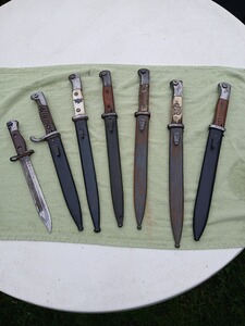 Verkaufe aus Erbschaft eine sehr alte Bajonett Sammlung, alle mit Hersteller Klingen Stempelung und Scheide! Der zustand ist dem Alter entsprechend!