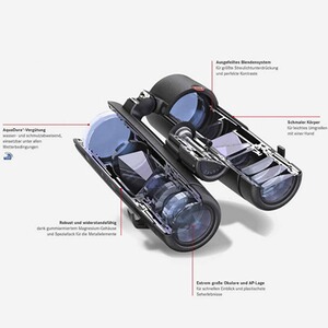 - Objektiver Sehwinkel 7,7°Transmission 92%Dioptrienausgleich ± 4 dptBrillenträgerokularAugenmuschel mit Drehschiebehülse demontierbar, mit vier RaststufenEinstellbarer Augenabstand 56 – 74 mmInnenfokussierung mit integriertem Dioptrienausgleich über MitteltriebHDC®-Mehrschichtvergütung und Leica AquaDura®-VergütungDachkantsystem mit Phasenkorrekturbelag P40 und HighLux-System HLS®druckwasserdicht, bis 5 m WassertiefeGehäuse Magnesium-Druckguss, stickstoffgefüllt