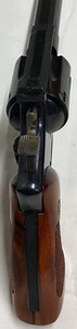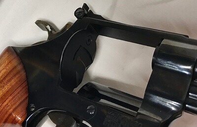 Der Revolver wird im Kundenauftrag angeboten und befindet sich in einem sehr guten Zustand (fast neuwertig). Das Laufinnere ist spiegelblank ohne sichtbare Beschädigungen, Züge und Felder sind scharf. Am Griffstück sind Originale Holzgriffschalen mit S&W - Logo montiert. Der Revolver weißt dem Alter entsprechend geringere Lager- und Gebrauchsspuren auf, die Brünierung ist zu ca. 100% erhalten. Der Revolver hat einen SA/DA - Abzug, der trocken bricht, eine offene Mikrometer Visierung mit 4 - Positionen - Balkenkorn (Verstellung auf 4 unterschiedliche Entfernungen) und einen 10-Zoll Lauf (ca. 254mm) mit montiertem Balkenkorn.