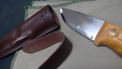In OVP. Das Messer ist in gutem Zustand, Klinge mit leichten Spuren, lediglich die Scheide ist beschädigt, die Gürtelschlaufe ist abgerissen, ließe sich aber wohl wieder festnieten (siehe Fotos)