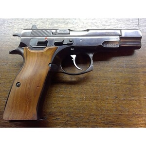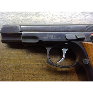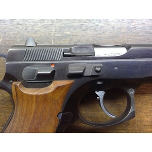 Selbstladepistole CZ Mod 85 in 9mmLuger. Lauflänge ca. 1cm. 1 Magazin, Holzgriffschalen. Kleinere Rostnarbenansätze am Abzugsbügel und Verschluss vorne. DA Abzug. Insgesamt guter Zustand.