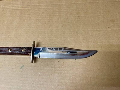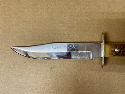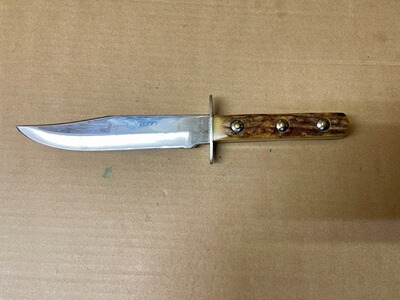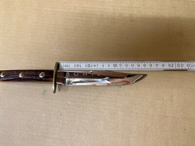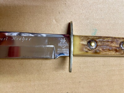 Vintage Bowie Messer von Rehwappen, das damals die Marke für die hochwertigsten Messer der Firma Linder war. Wunderschöne dicke Hirschhorngriffe mit schöner Patina. Zustand siehe Bilder. Privatverkauf, keine Garantie oder Rücknahme.