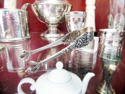 Für alle Gescheithansels, Angebot gilt nur für die Zuckerzange ohne die anderen schöne Antiquitäten auf den Fotos. Achtung: gebrauchter Artikel weist Gebrauchsspuren auf.