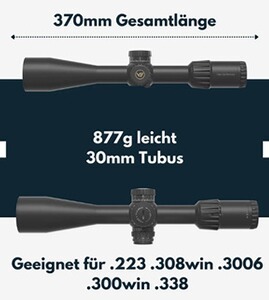 - Geprüft und Schussfest: .223, .300WIN, .308WIN, 30-06, .338, 12GA