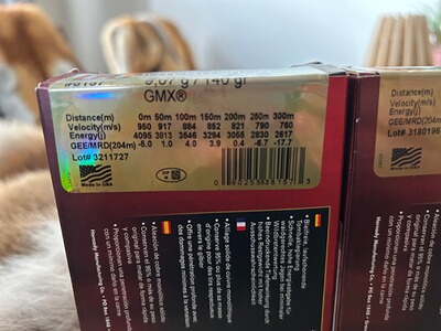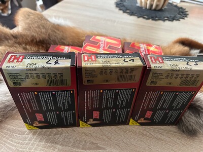 Wegen Überbestand habe ich 8 volle Packungen und eine angefangene Packung mit 8 Patronen (insgesamt 168 Patronen) Hornady GMX im Kaliber 7x64 mit 140 Grain Geschossgewicht abzugeben. Lose siehe Bilder, für gewöhnlich ist aber bei Hornady kein Unterschied zwischen den Losen feststellbar.