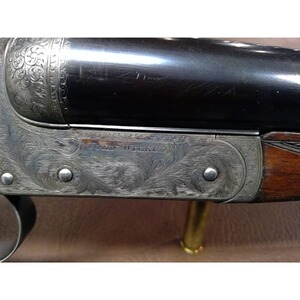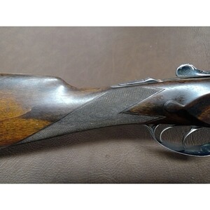 Querflinte John Wilkes London, Kaliber 12/70, Englische Schäftung, feine Fischhaut, Doppelabzug, doppelter Laufhaken.Handegefertigt in den 50er Jahren. Sammerwaffe