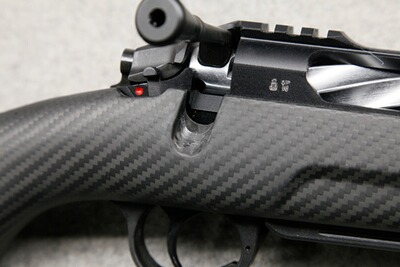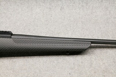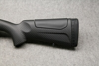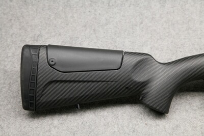 Mit nur 2,5 kg Leergewicht eine sehr leichte Büchse. Robuster, aus einem Stück gefertigter Kohlefaser-Schaft, mit dämpfender Gummischaftkappe. Picatinny-Elemente auf dem Systemkasten aus 7075-Aluminium.