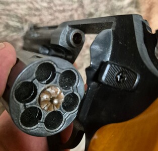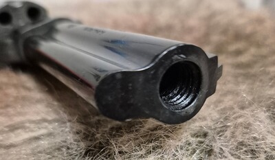 Lieferumfang ist nur die der Revolver. Kein weiteres Zubehör vorhanden. Tiefsitzende Laufsperre, sog. "scharfe Mündung".