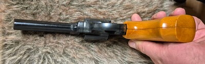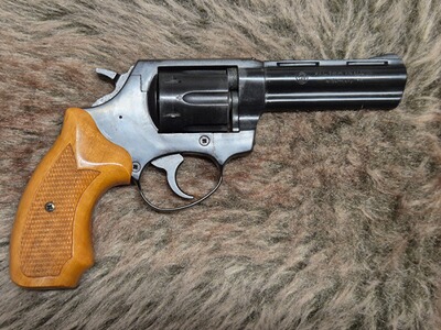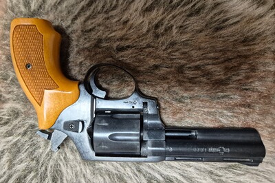 Schreckschussrevolver Röhm RG99. Alte PTB 452. Kaliber 9mm.Wird so seit Jahren nicht mehr gebaut. Hersteller war die nicht mehr existierende Firma Röhm. Sehr saubere Fertigungsqualität. Holzgriffschalen! Die Waffe funktioniert technisch einwandfrei, hat jedoch optische Gebrauchsspuren.