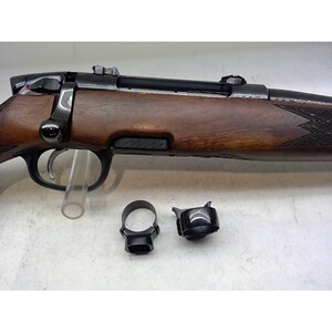 Rep.Büchse Steyr Mannlicher S 8x86S. Lauflänge ca. 63cm, Gesamtlänge ca. 116cm, Schaftlänge ca. 35cm. Flintenabzug. Magazin voll funktionstüchtig. Schwenkmontageringe 30mm Durchmesser vorhanden. Riemenbügel mit Druckknopf für Schnellwechsel. Holzschaft mit Gummischaftkappe.
