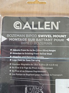 Originalverpackter Allen Bipod, alle Angaben auf den Fotos erkennbar. Dabei ist außerdem ein Adapter für den Vorderschaft, welcher verbaut werden kann.
