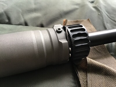 Der Dämpfer wird per Schnellverschluss am Mündungsfeuerdämpfer angebracht.