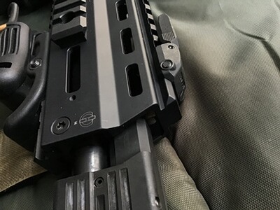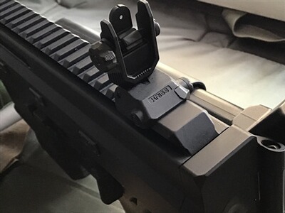 Zur Waffe ist eine flach bauende FlipUp-Visierung von KRISS in Stahl,