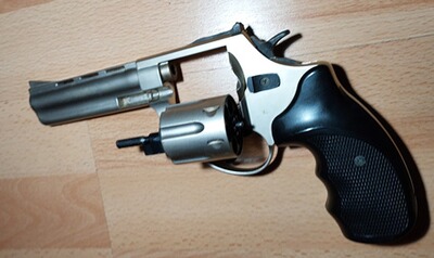 Ich verkaufe meinen schönen Ekol Viper 4,5 Zoll Schreckschuss Revolver in vernickelt, Kaliber 9 mm R.K. (PTB 1003) mit Stahltrommel.