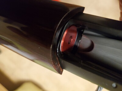 Der Patronenzubringer besteht aus rot eloxiertem Aluminium, der werkseitige Zubringer aus Kunststoff wird beigelegt. Die Flinte besitzt ein Abzugsschloss mit Beschreibung und wird in der Originalverpackung mit Beschreibung angeboten. Eine Hiviz-Leuchtkon Fiberglas ist austauschbar. Die Riemenbügelschraube ist nicht montiert, wird jedoch beigelegt.