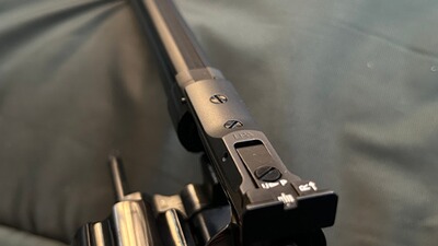 Der Revolver befindet sich in einem für sein Alter sehr guten Zustand mit minimalen Gebrauchsspuren, sehr wenig geschossen, ohne Magnumrille. Es wurde vom Vorbesitzer ein LPA-Visier aufgebracht, welches auch wieder entfernt werden könnte. Das originale Kimmenblatt wird beigelegt, das originale Korn fehlt.