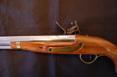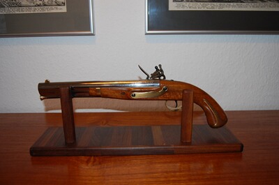 Biete diese Harpers Ferry von Pedersoli im super Zustand mit speziell für diese Waffe gebautem Ständer.Sie hat einen rostfreien,hochglanzpolierten,fein gezogenen Lauf im Kaliber .58 (14,7 mm). Das buntgehärtete Schloss hat eine stramme Hauptfeder und rastet in beiden Positionen sauber ein.Der Walnussschaft ist geölt und schön gemasert mit nur wenig kleinen Kratzern und Druckstellen.Natürlich beschossen und für den scharfen Schuss ausgelegt.Vermutlich ungeschossen.Der Ständer wurde aus 8mm Nussbaum Parkett auf einem Träger aus MDF gebaut, vielfach mit rohem Leinöl behandelt und abschließend gewachst.