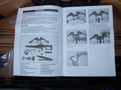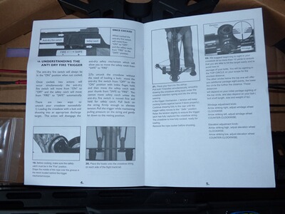 Lieferumfang: Armbrust, 4 Pfeile 20", Anbauköcher für 4 Pfeile, Sehnenwachs, Spannhilfe, gepolsterter Tragegurt, Anleitung in englischer Sprache.