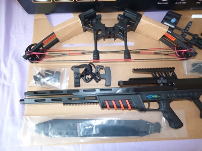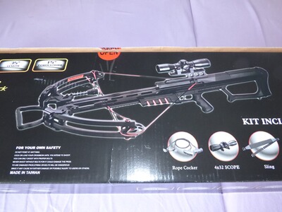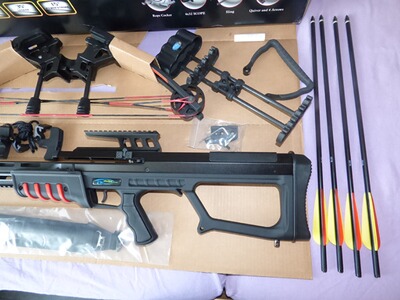Die Armbrust ist NEU und wird wie abgebildet in der Originalbox geliefert. Wurde 2019 neu gekauft, kam aber nie zum Einsatz.