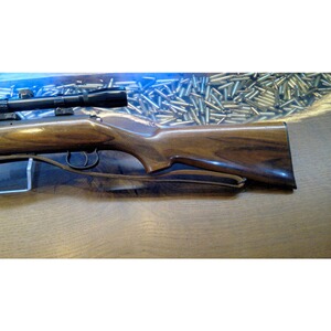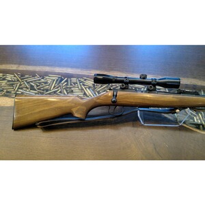 Gebrauchte Kleinkaliber Repetierbüchse Brno Mod 2 im Kaliber .22lr in sehr gutem Zustand. Wenig gebraucht. Montiert ist auf der Prismenschiene ein Sornet 4x30 Abs 4. Mit 1x 5 Schuss Magazin