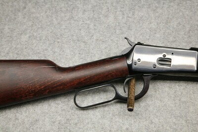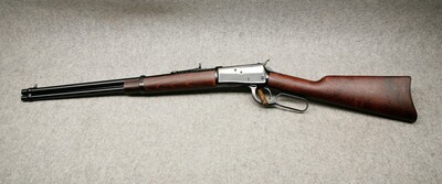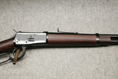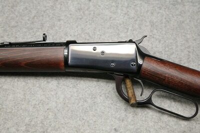 Kaliber .357 Magnum. Lauflänge 51 cm / 20", runder Lauf, Buckhorn-Kimme mit Messing-Perlkorn. Magazinkapazität 10 + 1 Patronen. Sicherung auf der Verschluß-Oberseite. Neo-Klassiker nach dem berühmten und bewährten Vorbild, der Wichester 1892. Handlicher Karabiner mit brüniertem Finish. Gesamtlänge 95 cm, Gewicht ca. 3,5 kg.