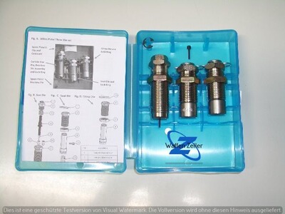 3-teiliger HM-Matrizensatz bestehend aus Kalibrier/Entzündermatrize, Setzmatrize und Crimpmatrize.