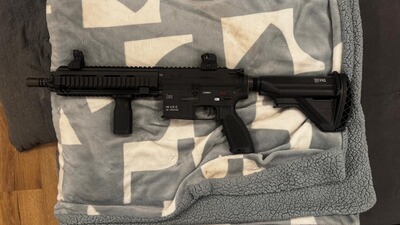 Diese HK416 von Umarex wurde nie im aktiven Einsatz genutzt. Gelegentlich wurde sie im Garten ausprobiert. Zum Angebot gehören ein 11.1V Akku und ein Ladegerät von Begadi, sowie zwei zusätzliche Magazine. Ein Griff wurde vorne montiert. Der Versand des Artikels ist möglich, wobei die Kosten vom Käufer übernommen werden müssen.