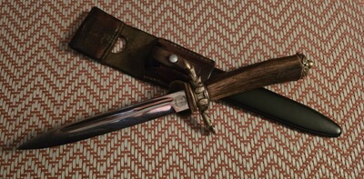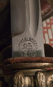 Gustav Spitzer,Solingen.Ca 20 cm Klinge, ca 36 cm Gesamtlänge. Griffteile - Messing, Griff - echt Hirschhorn.