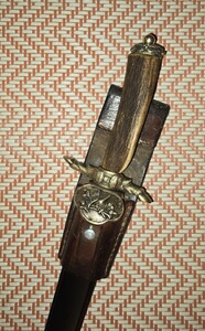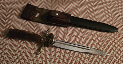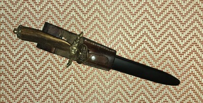 Hirschfänger mit Kunststoffscheide und Leder Koppelschuh,