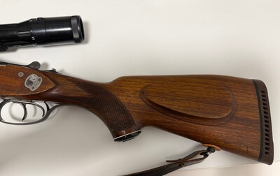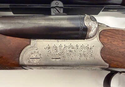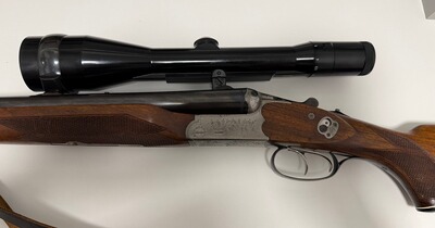 Zum Verkauf steht ein Drilling der Marke Sauer & Sohn, Modell 3000. Die Waffe wird zusammen mit einem Zielfernrohr Zeiss Diavari Z 2,5-10x52 angeboten. Der Einstecklauf stammt von der Firma Krieghof.